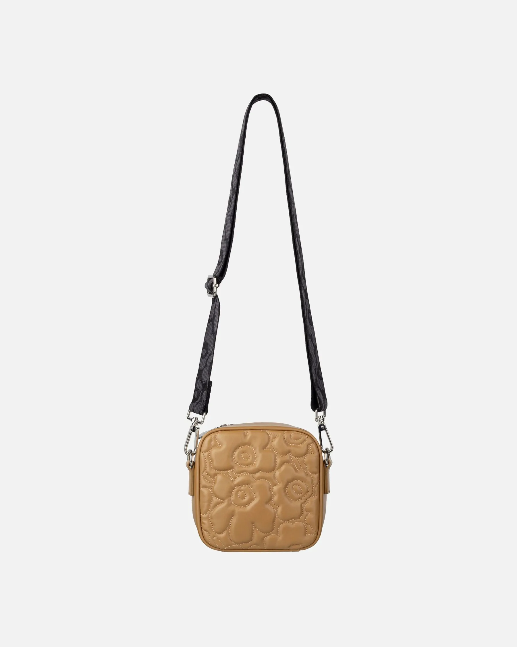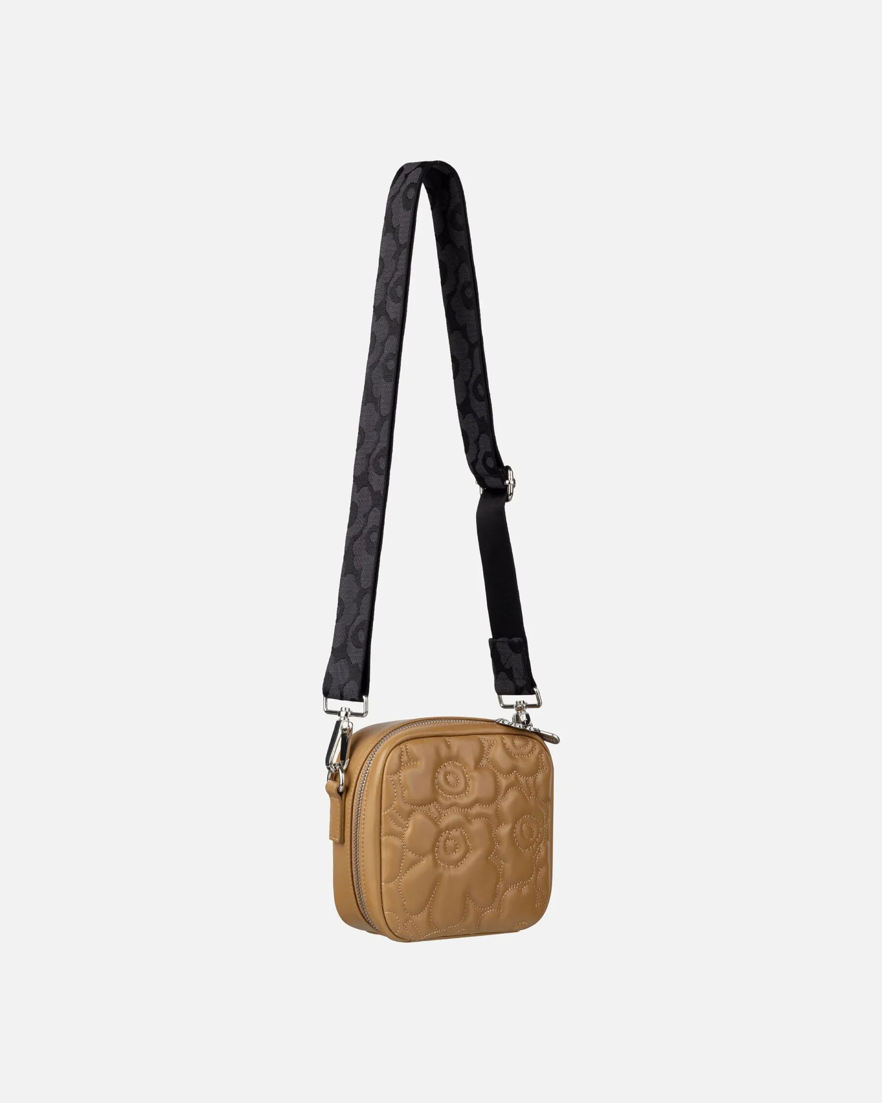 Baby Gratha -Olkalaukku On Valmistettu Pehmustetusta Nahasta, Johon On Tikattu Unikko-Kuosi. Pehmeä Nappanahka Patinoituu Kauniisti Käytössä. Kierrätetystä Polyamidista Valmistettu Olkahihna On Irrotettava Ja Säädettävä Ja Siinä On Jacquard-Kudottu Unikko-Kuosi. Laukku Sulkeutuu Vetoketjulla, Jossa On Yksi Unikko-Kukan Mallinen Vedin. Sisäpuoli On Vuoritettu Ja Siellä On Pieni Vetoketjutasku.