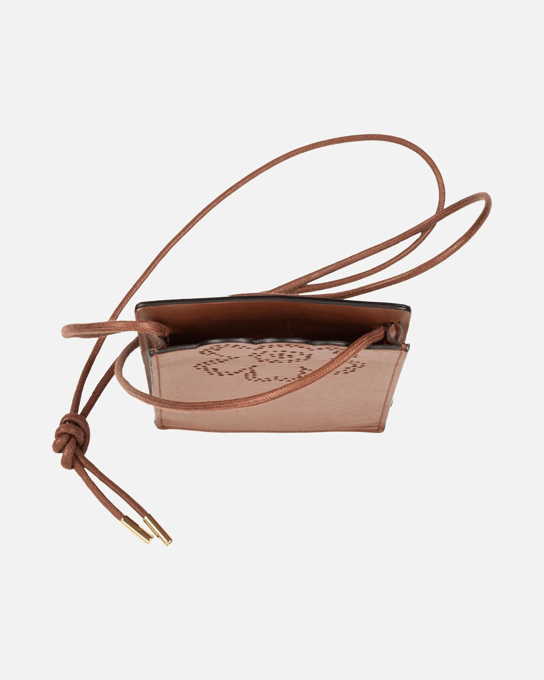 Imprint Phone Pocket -Laukku On Valmistettu Jäljitettävästä Skandinaavisesta Nahasta. Etupuolen Pitsimäinen Unikko-Kukka Muodostuu Pienistä Rei’Istä. Laukussa On Kolme Korttipaikkaa Takapuolella Sekä Vahattu Puuvillahihna, Jonka Pituutta Voi Säätää Solmulla.