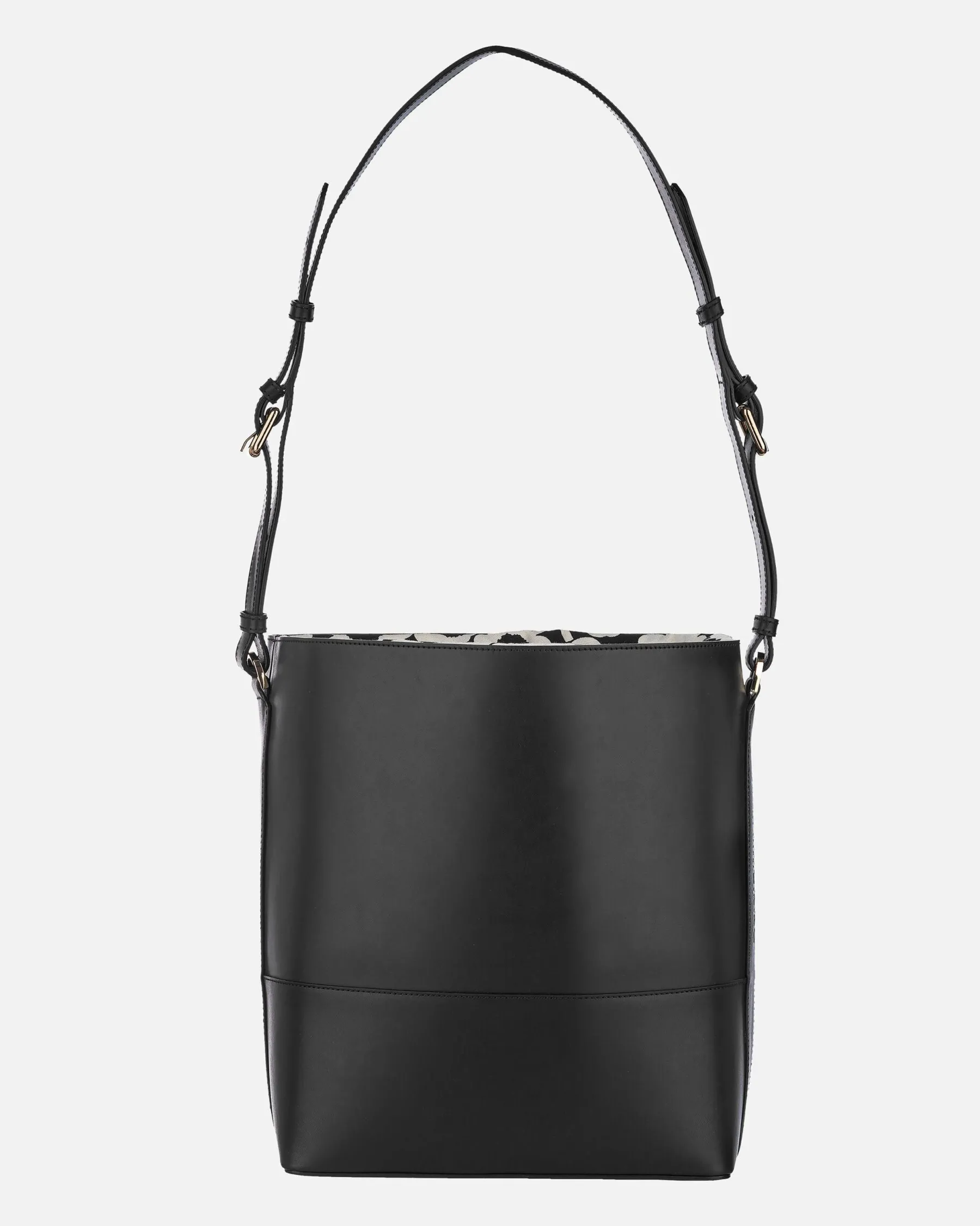 Imprint Tote Unikko -Laukku On Valmistettu Jäljitettävästä Skandinaavisesta Nahasta. Etupuolen Unikko-Kukka Muodostuu Pitsimäisesti Pienistä Rei’Istä. Laukussa On Säädettävä Olkahihna. Laukun Suuaukko Vedetään Kiinni Nahkahihnojen Avulla Ja Kiinnitetään Stopparilla. Laukussa On Yksi Sisätasku. Sisävuori On Valmistettu Unikko-Kuosisesta Puuvillasta. Marimekko-Logo On Kohokuvioitu Laukun Sivuihin Ja Pohjaan.
