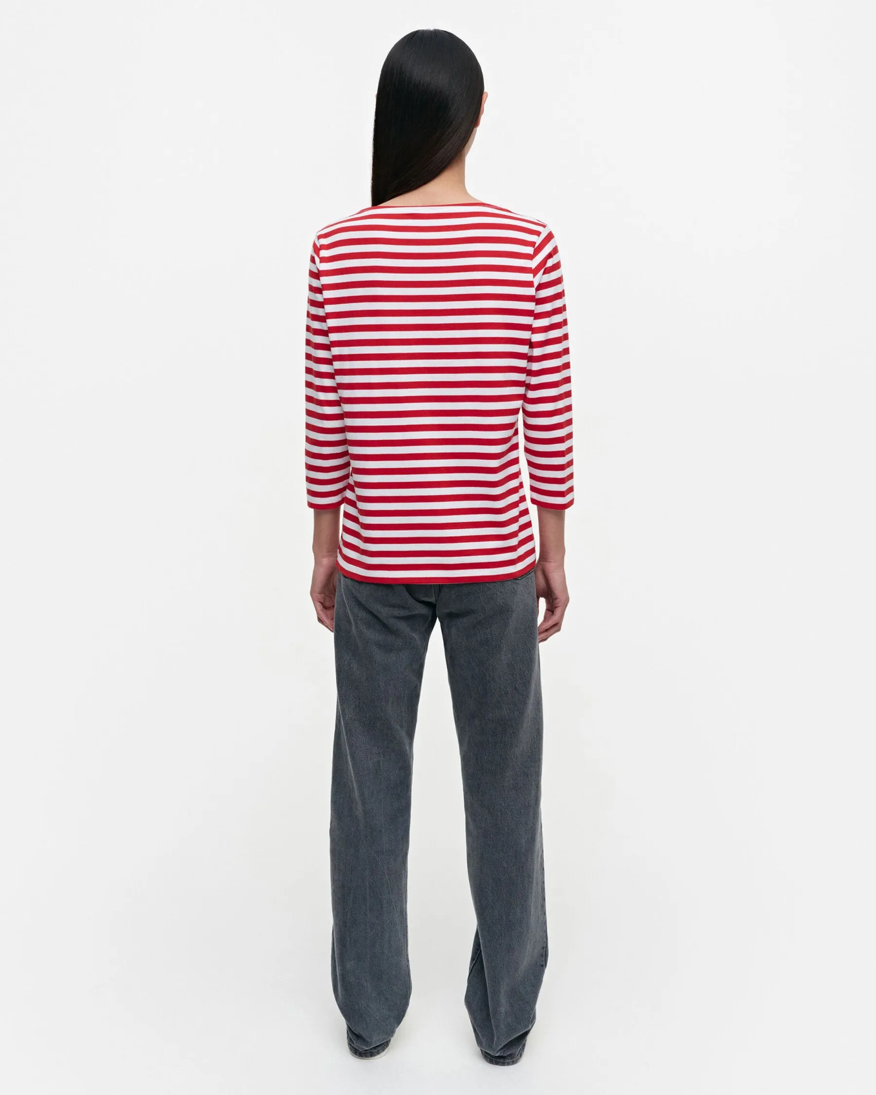 Puuvillatrikoosta Valmistetussa Ilma-Paidassa On Klassinen Tasaraita-Kuosi, Venepääntie Sekä Vajaamittaiset Hihat.