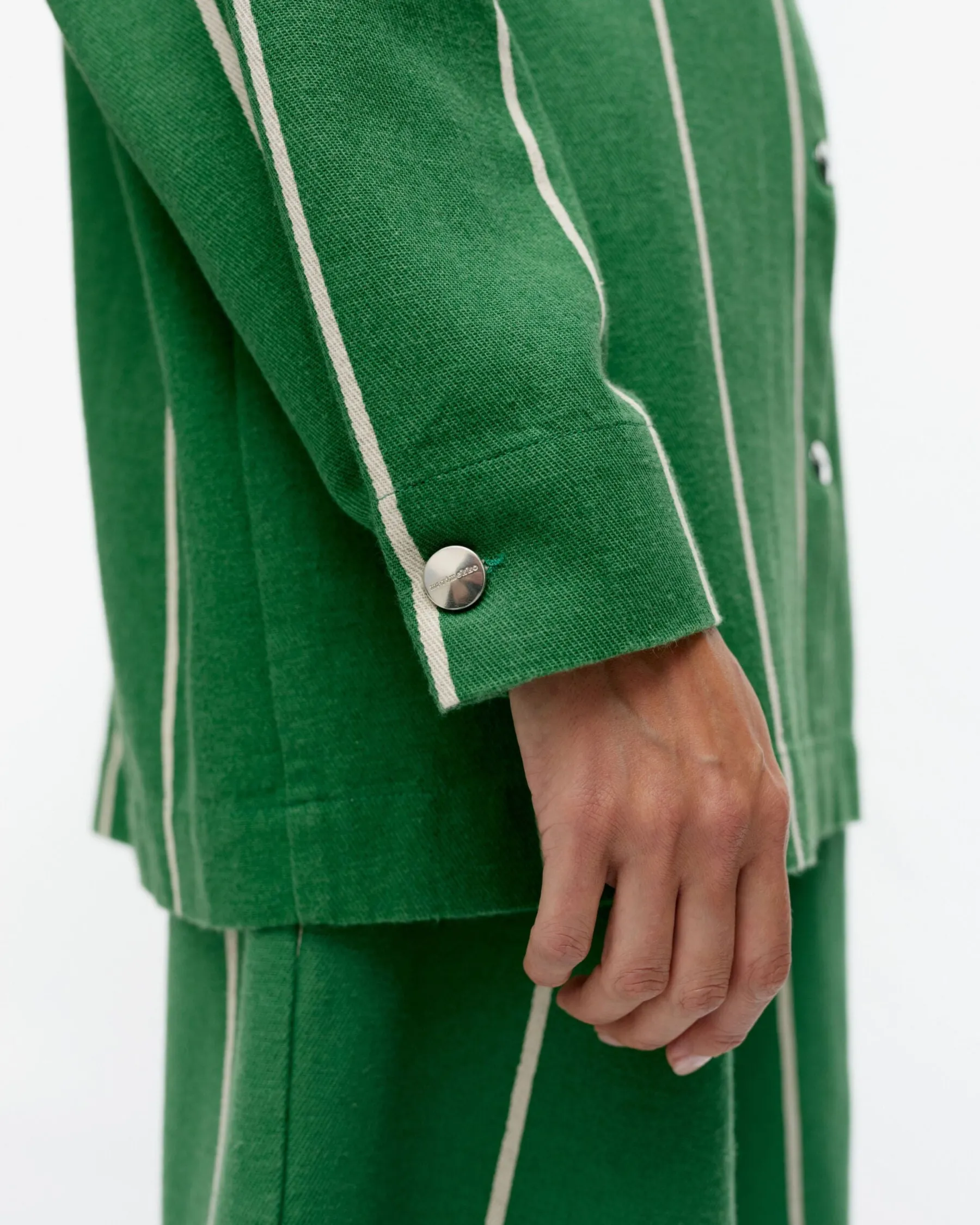 Kulmat-Paitatakki On Valmistettu Puuvillapellavatvillistä Ja Siinä On Rento Istuvuus, Suora Leikkaus Ja Vesi-Kuosi, Joka On Painettu Helsingissä. Paitatakissa On Kaulukset, Farkkunappisuljenta Ja Rintatasku. Hihansuissa On Napit Ja Kiristysmahdollisuus.