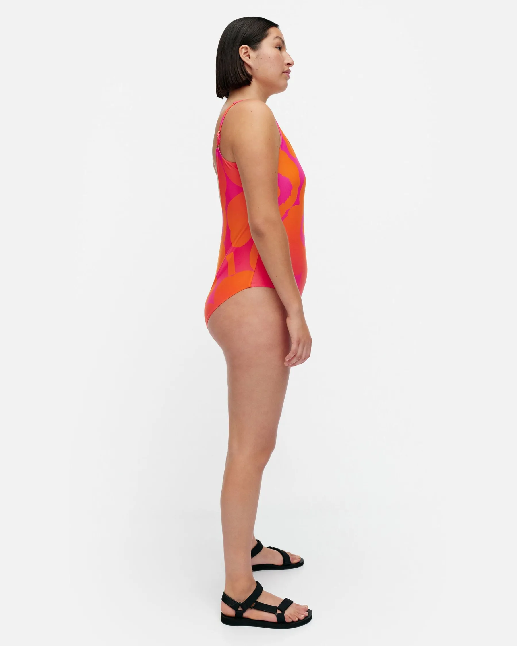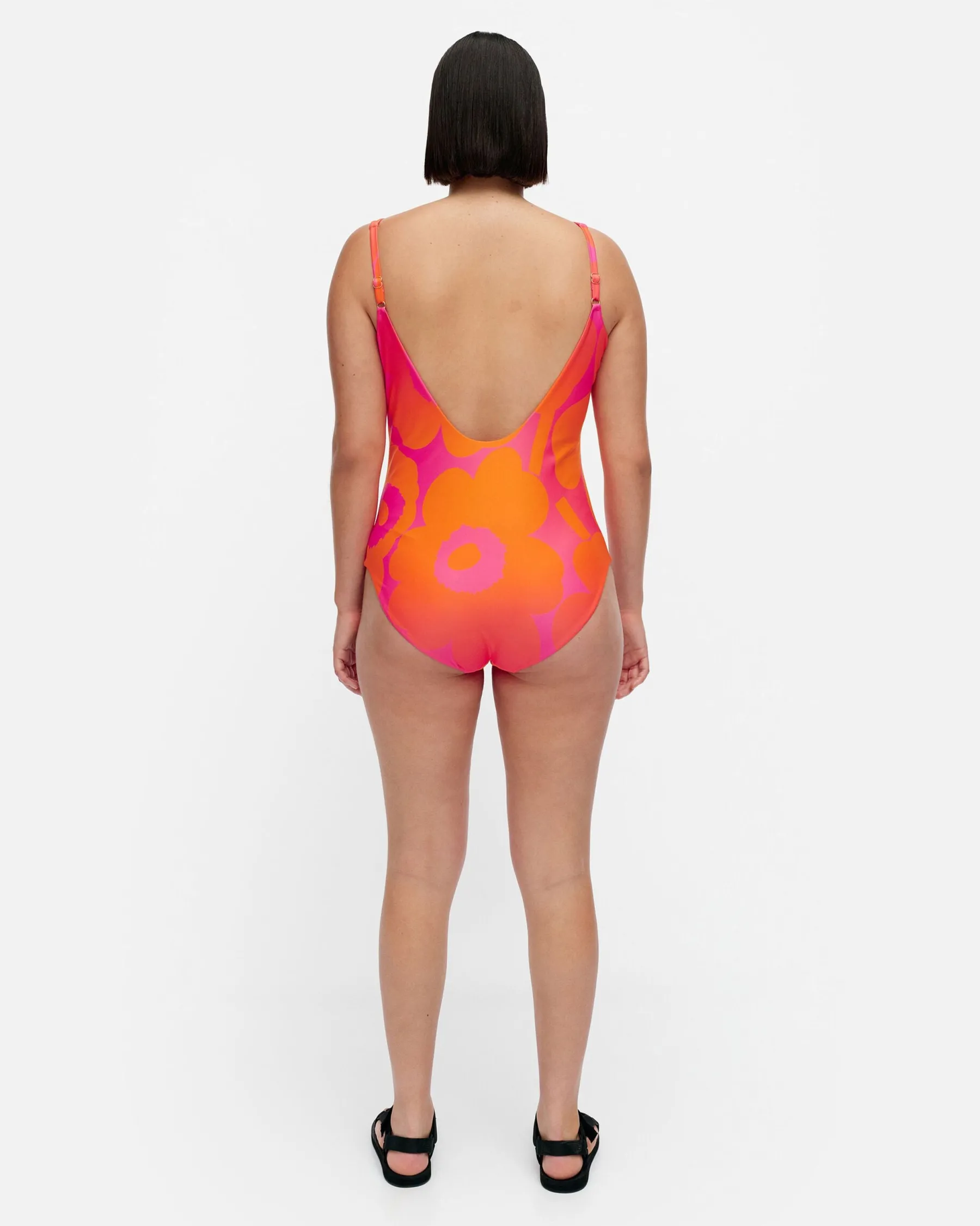 Agnetha-Uimapuvussa On Liukuvärjätty Unikko-Kuosi, Jossa Värit Vaihtuvat Oranssista Vaaleanpunaiseen. Uimapuku On Kokonaan Vuoritettu Ja Siinä On Säädettävät Olkaimet Sekä Avonainen Selkä. Materiaalilla On Upf 50+ -Luokitus.