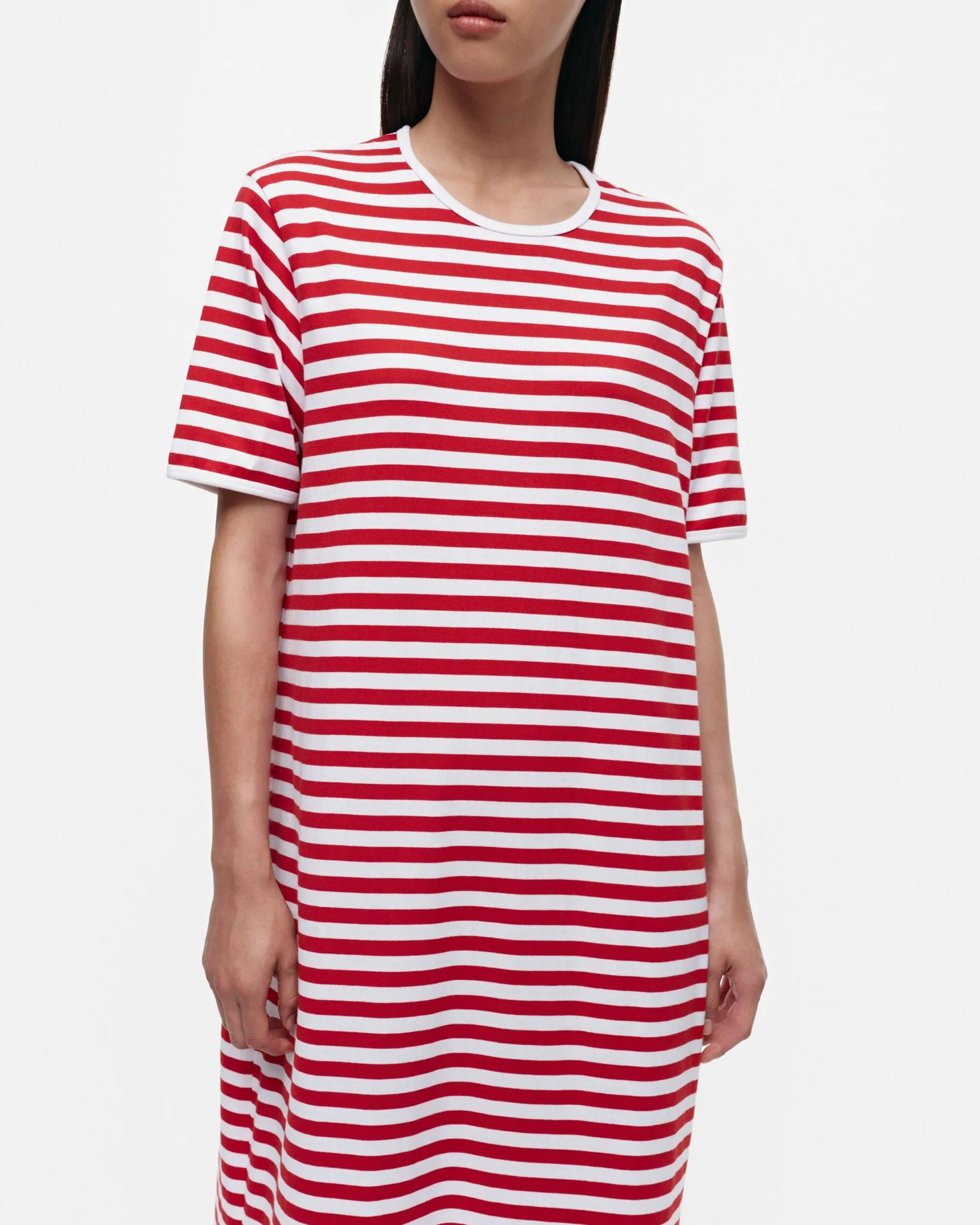 Kun Sekä Naiset Että Miehet Alkoivat Yhä Enemmän Kulkea Farkuissa, Halusi Annika Rimala Suunnitella Kokoelman Farkkujen Kanssa Yhteen Sopivia Trikoovaatteita. Kaikille Farkkuihmisille, Ikään, Kokoon Ja Sukupuoleen Katsomatta. Niin Syntyi Marimekon Ensimmäinen Trikoomallisto. Tasaraitainen Ja Tasa-Arvoa Julistava.Koko & Istuvuus